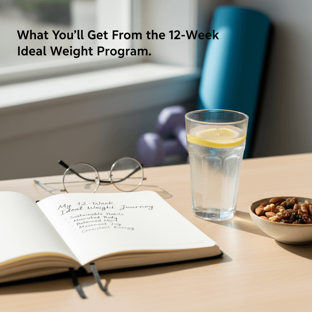 The 12-Week Ideal Weight Program is designed to help you change your relationship with food, movement, and your body so you can move toward your ideal weight in a realistic, healthy way—without relying on willpower alone or chasing quick fixes.